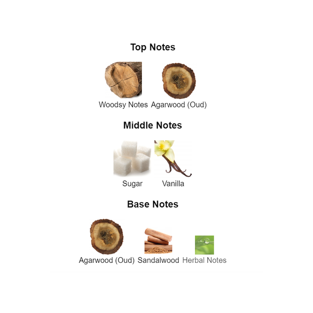 base notes are Agarwood (Oud), Sandalwood and Herbal Notes.