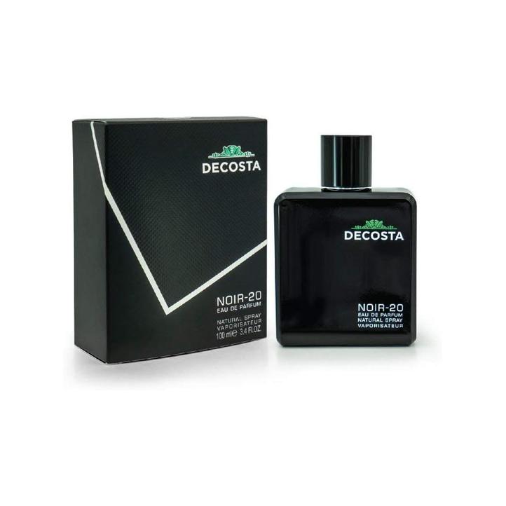 Decosta Noir-20 by Fragrance World opens with top notes of rich black truffle and bergamot, followed by a floral heart of orchid and lotus, with a deep, sensual base of patchouli, vanilla, and sandalwood. This unisex fragrance is bold and mysterious, perfect for evening wear.