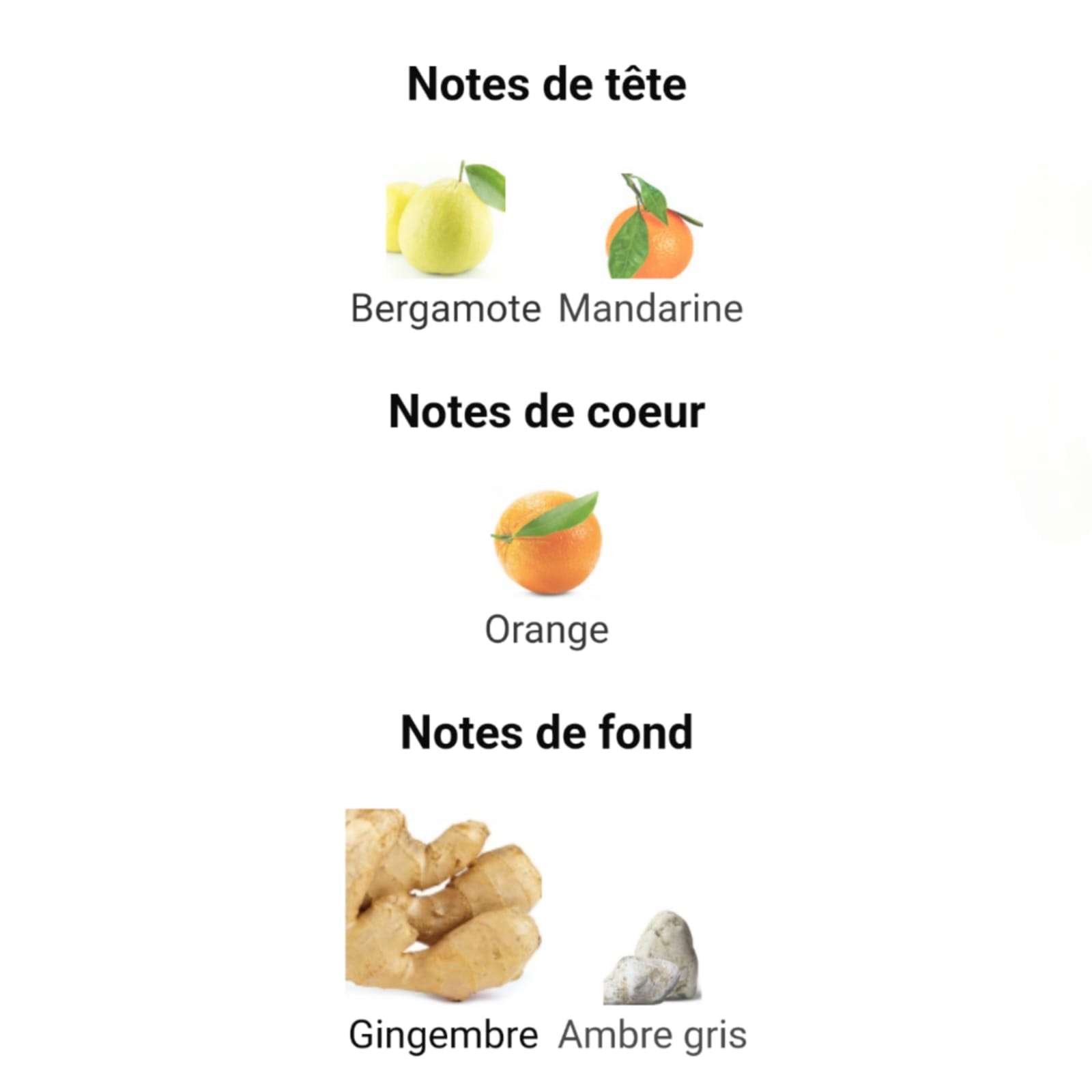 les notes de fond sont Gingembre et Ambre gris.