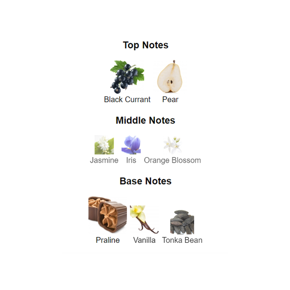 base notes are Praline, Vanilla and Tonka Bean.