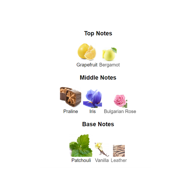 base notes are Chocolate, Patchouli, Vanilla, Incense, Amber, Sandalwood, Vetiver and White Musk.