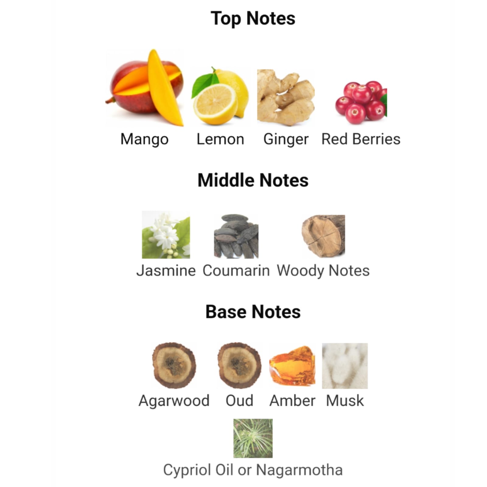 middle notes are Leather, Raspberry, Woody Notes, Incense and Jasmine;