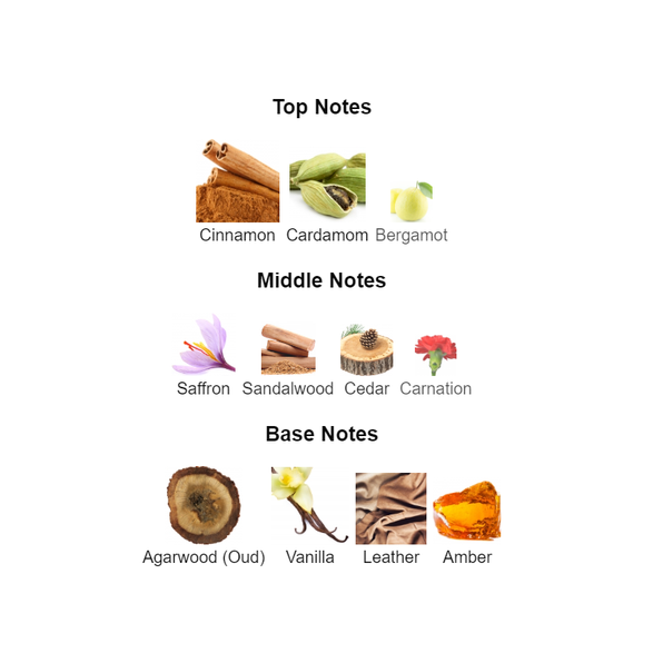 base notes are Agarwood (Oud), Amberwood and Cambodian Oud.
