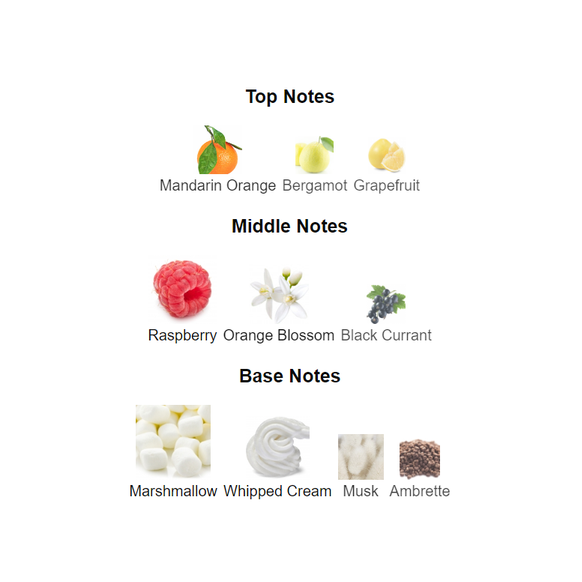 base notes are Marshmallow, Whipped Cream, Musk and Ambrette.