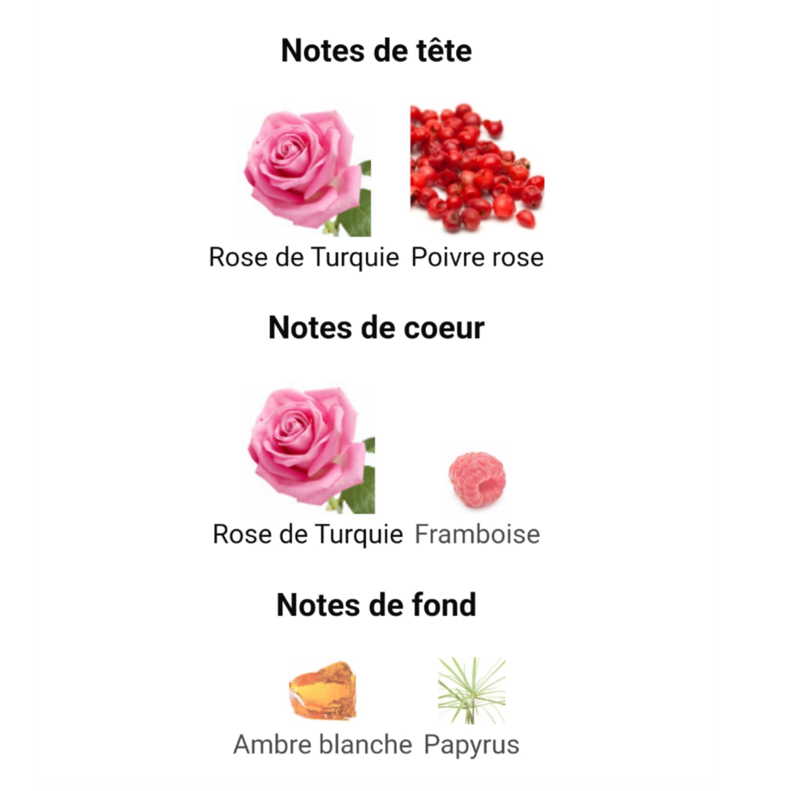 - Tête : Rose de Turquie, Poivre rose
