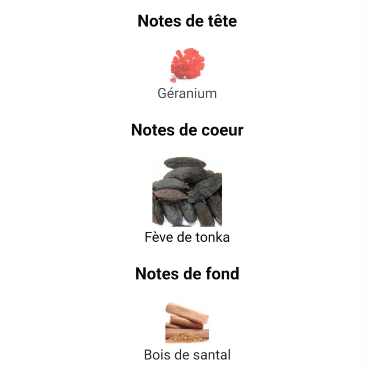 middle notes are Ambroxan, Tonka Bean and Geranium;