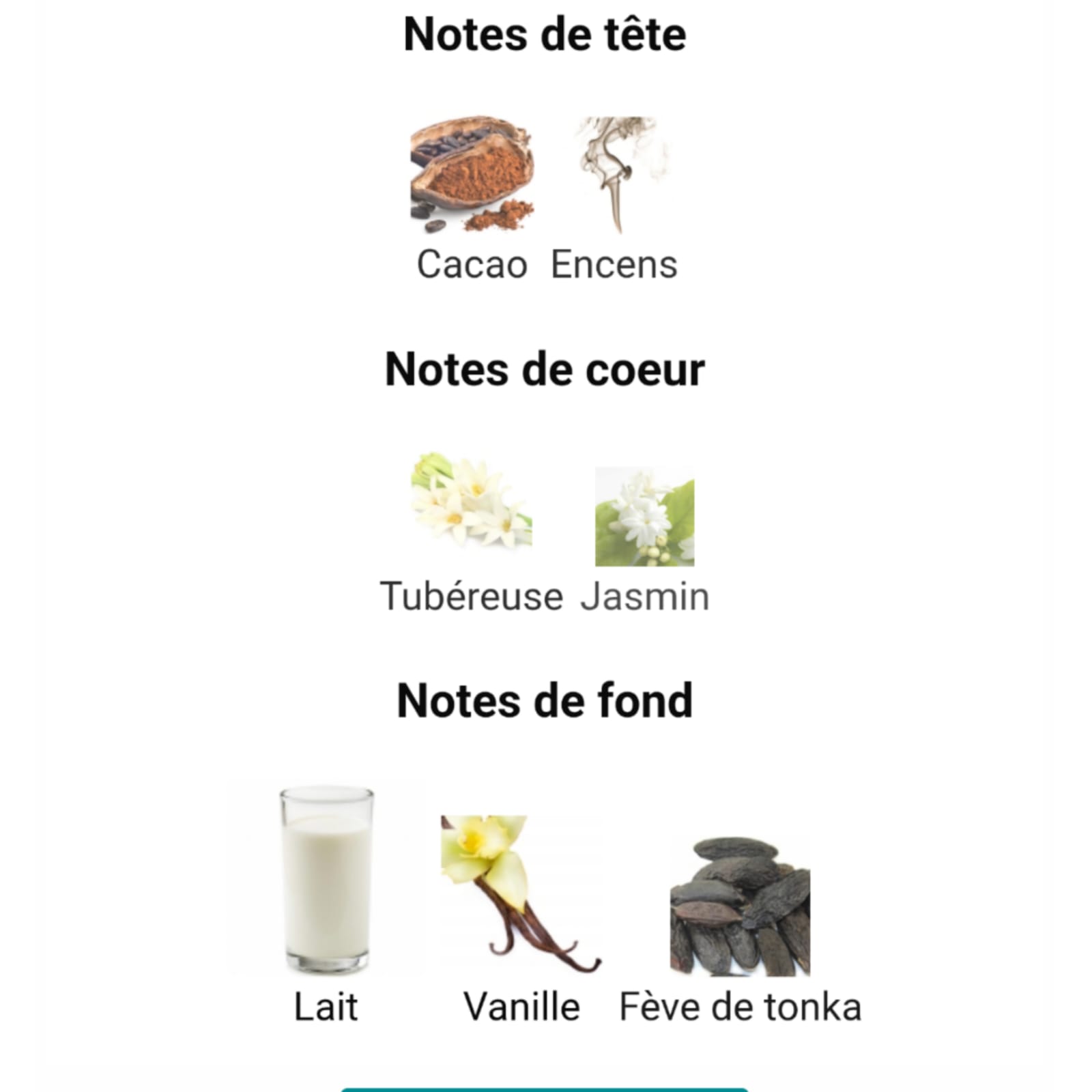 les notes de fond sont Lait, Vanille et Fève de tonka.