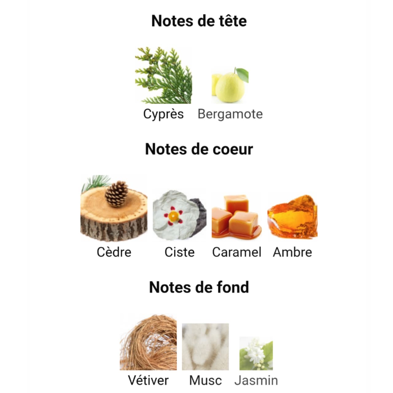 | Main accords | boisé, ambré, aromatique. |