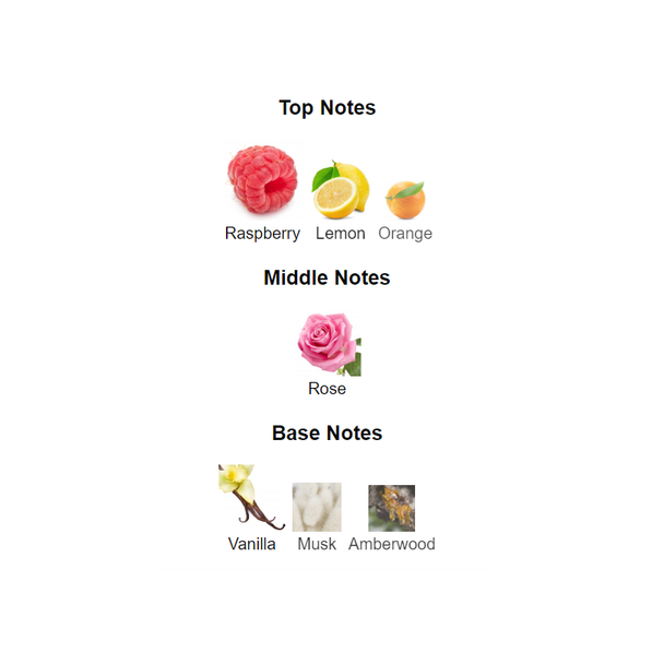 Top notes are Raspberry, Lemon and Orange;